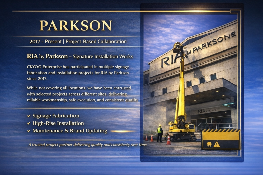 ckyoo Signboard • Design • Digital Solutions • Maintenance • Equipment & Machinery Repair 🔧 Signboard Installation - LED Sign, Lightbox, 3D Lettering 🎨 Design Services - Logo, Branding, Advertising Artwork 💻 Digital Solutions - Website, Online Marketing, SEO 🛠 Maintenance & Repair - Signboard, Equipment Fix ⚙ Equipment & Machinery Repair - Industrial & Commercial Repair View All Post